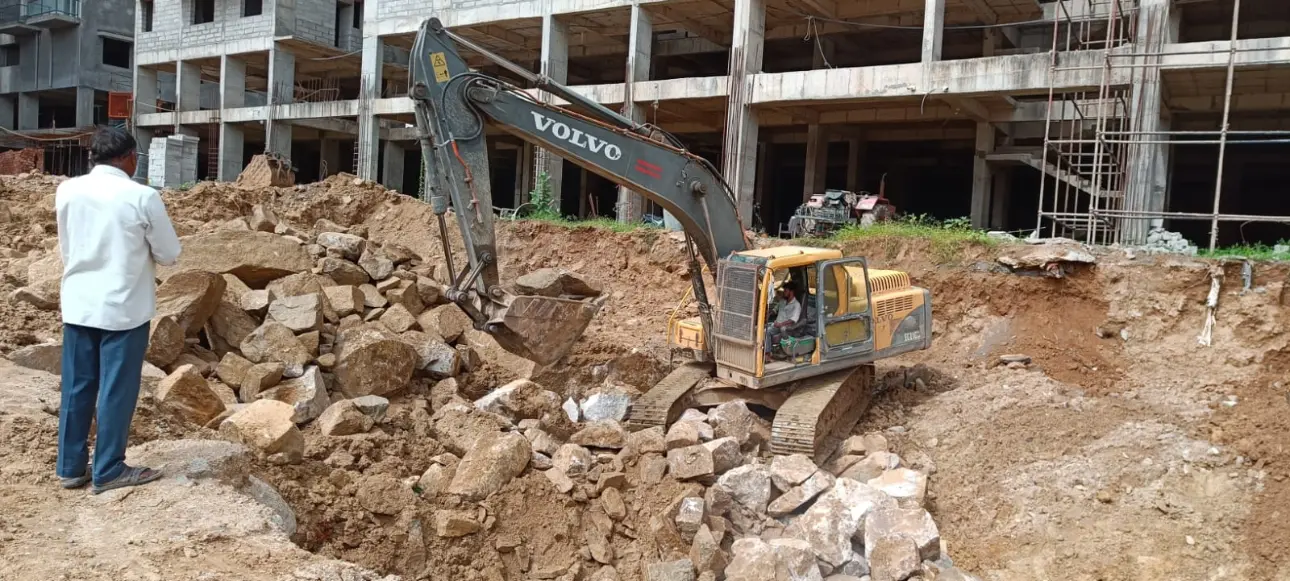 Excavation of Hard rock by controlled blasting and dumping outside of the site.